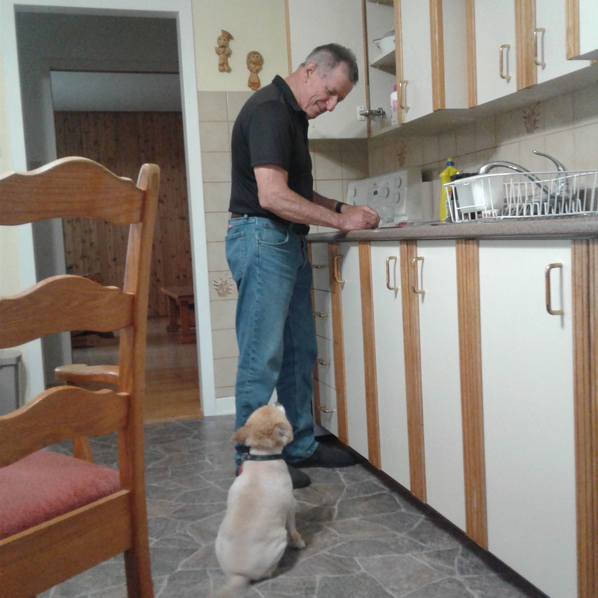 - petting and cuddling the dog